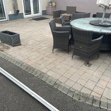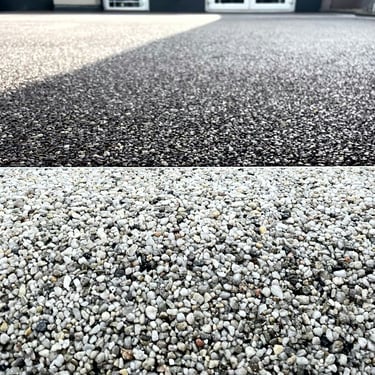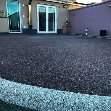 Bespoke Resin bound - Merlot colour patio with Pearl quartz frame