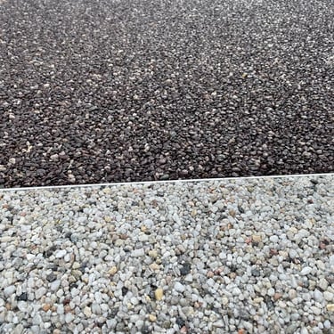 Patio transformation with Resin bound Merlot color stones which were poured in the main area and pearl quartz lines framed all patio
