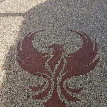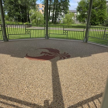 As renowned resin bound experts in Ireland, we take immense pride in our recent collaboration with Tullamore County Council. It was a true pleasure to contribute to the beautification of Tullamore by creating a stunning symbol of the town: the phoenix design. This intricate artwork, combined with an inviting patio adorned with springtime colour aggregates, exemplifies our dedication to craftsmanship and aesthetic appeal.